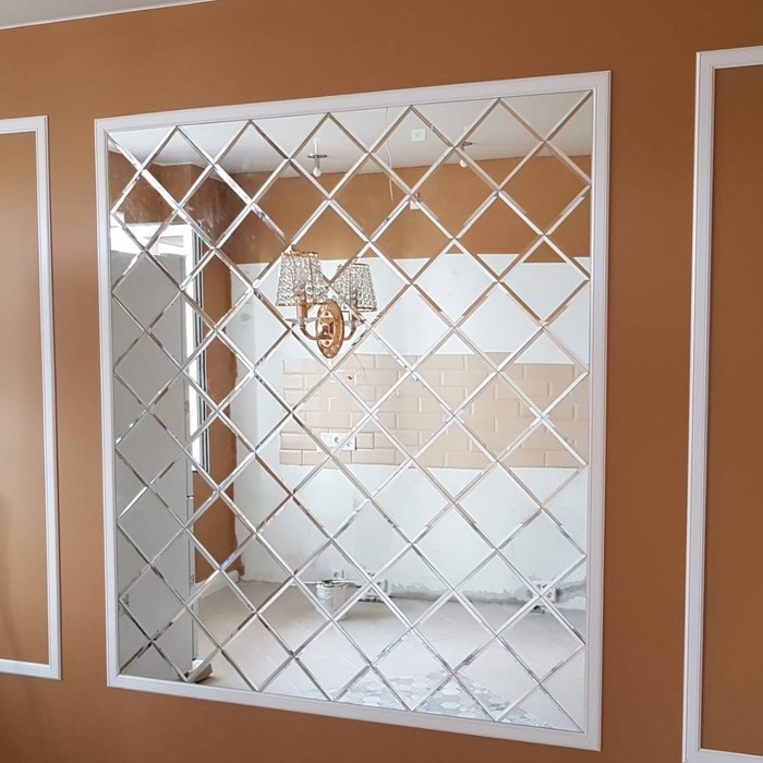 Использована серебряная квадратная зеркальная плитка 18х18.